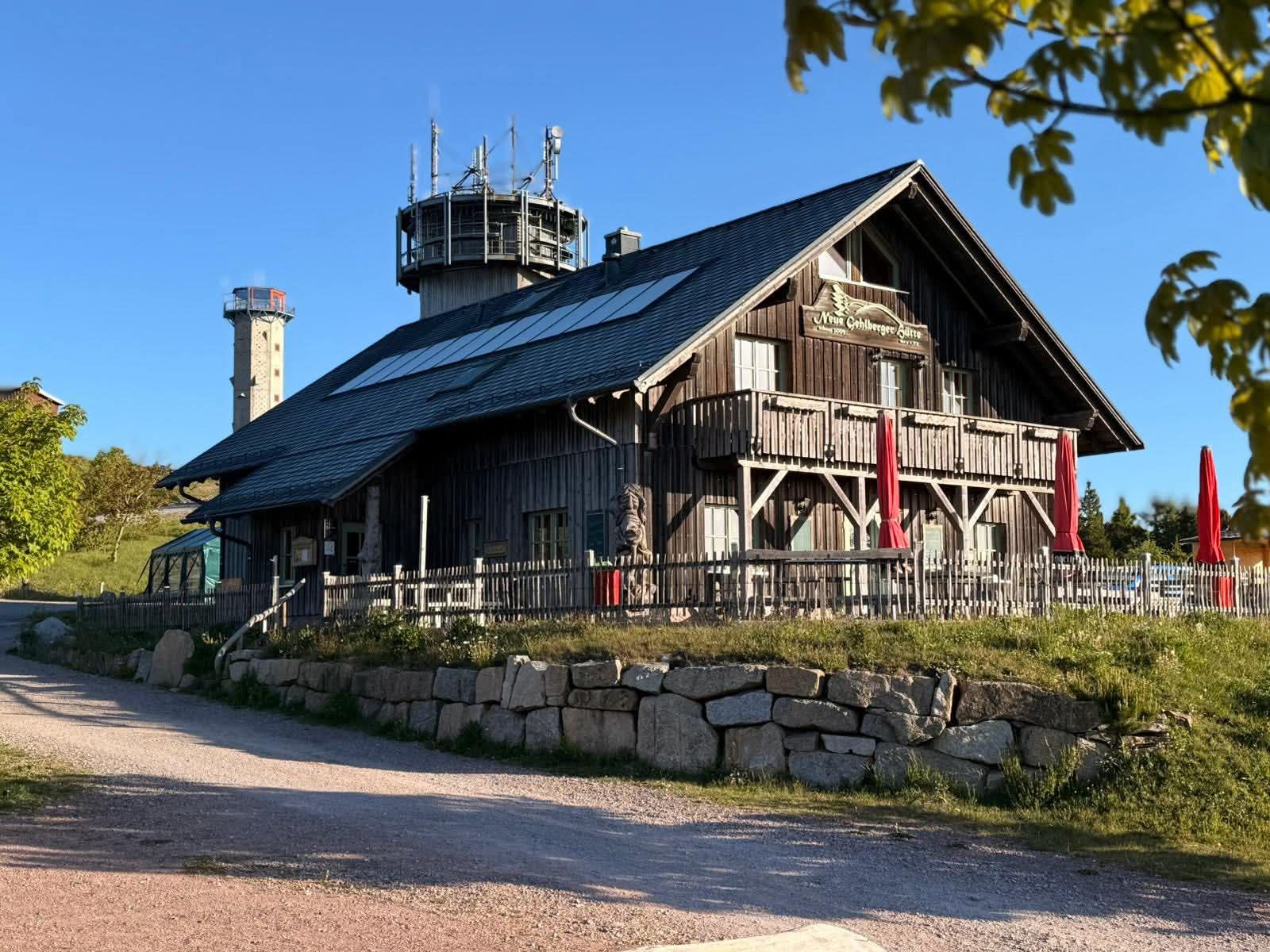 De Neue Gehlberger Hütte ligt op de Schneekopf, omringd door bos en wandelpaden. Je slaapt in knusse meerpersoonskamers in echte huttenstijl, ontbijt is inbegrepen en honden zijn welkom. Perfect voor wie direct vanuit de deur wil wandelen — of in de winter wil langlaufen.